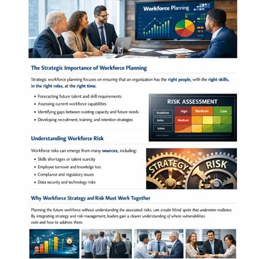 By integrating data-driven workforce planning with enterprise risk insights, we tailor strategies that fit your unique challenges and goals.